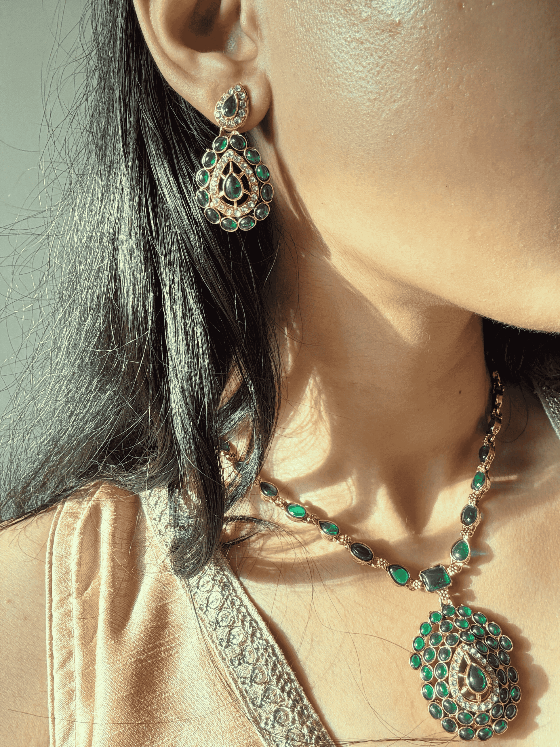 Accompanied by matching statement earrings, this set is ideal for weddings, festive celebrations, and cultural events.